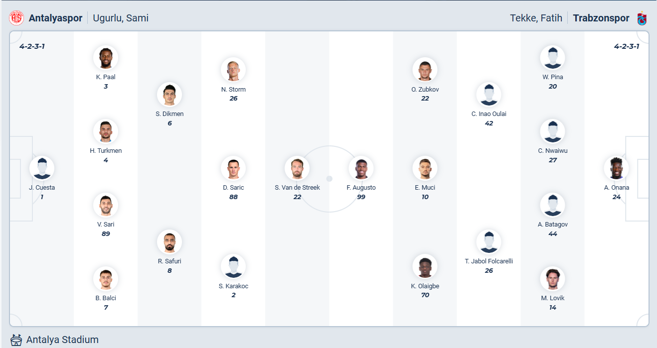 Antalyaspor không phải đội bóng mạnh của giải Thổ Nhĩ Kỳ, họ chỉ đứng thứ 15 mùa trước. Mùa giải năm nay đội bóng của HLV đặt mục tiêu trụ hạng lên trước tiên, với vị trứ 14 hiện tại thì tình hình không đến nỗi nguy cấp. Chiến thắng ở vòng đấu trước sau chuỗi trận chỉ hòa và thua giúp Antalyaspor có khoảng cách 4 điểm với nhóm xuống hạng và họ cần thêm những điểm số để tạo ra khoảng cách an toàn. Tuy nhiên trước đối thủ mạnh hơn như Trabzonspor thì xem ra cơ hội có điểm không cao, nhiều khả nưang Antalyaspor sẽ phải nhận thêm một trận thua nữa.
